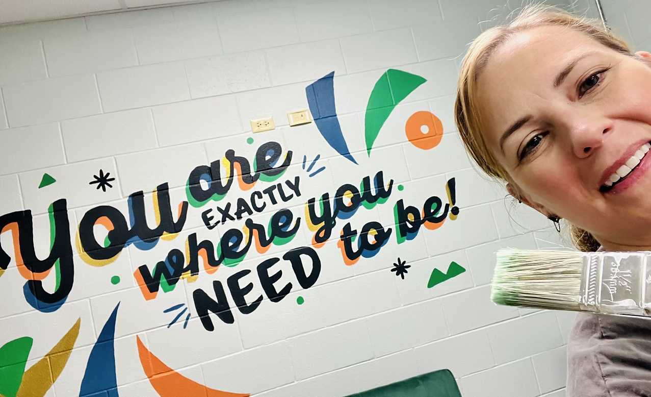 Painting a mural at my sons' school was such fun experience. How cool is it to put an inspirational mark on a building that educates so many. I painted it in a 6 hour school day as people passed by and made comments about how much they loved it. I'm hoping to get more opportunities to do similar work.
